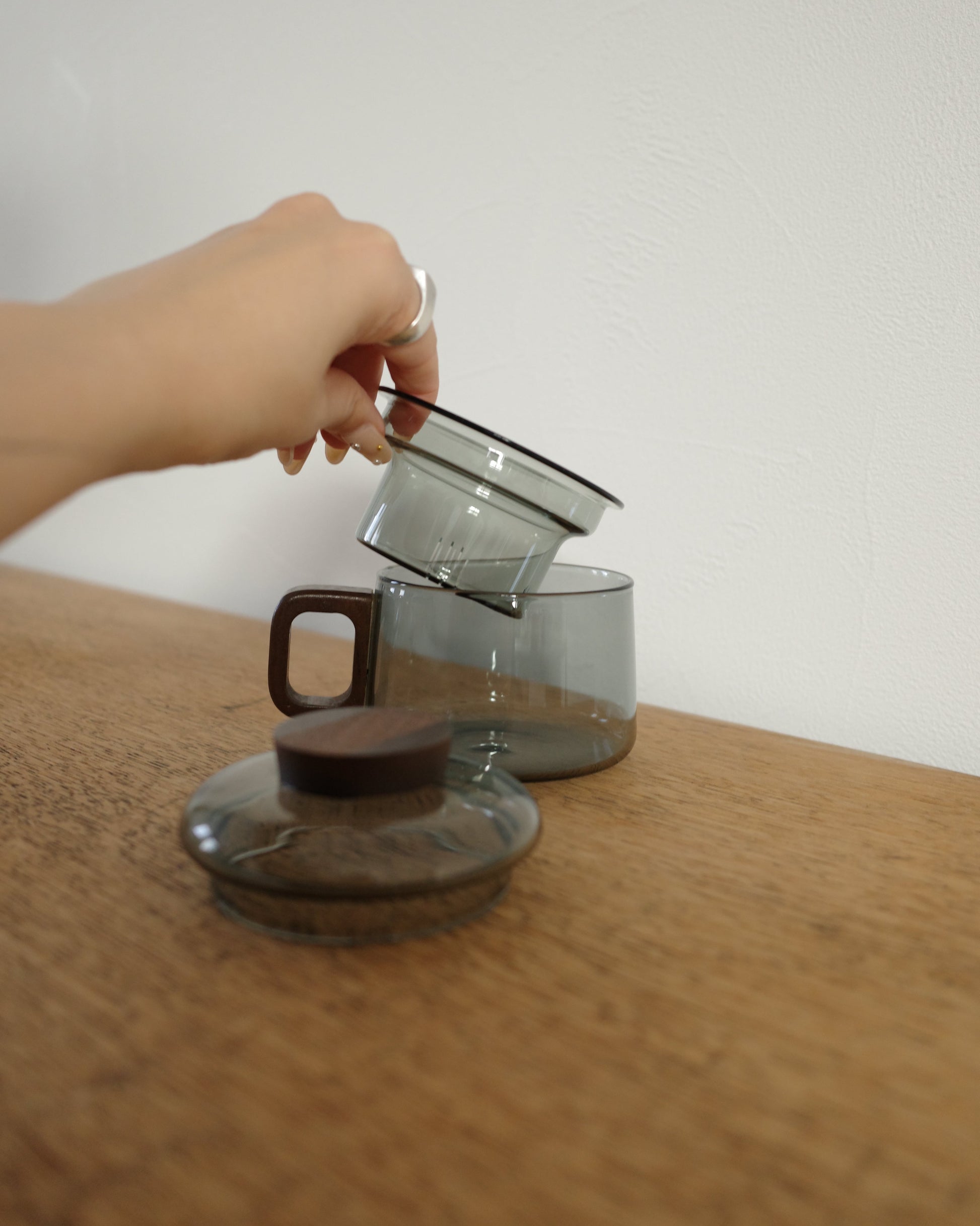 ガラス製で蓋と茶こしカップは取り外しができるため、