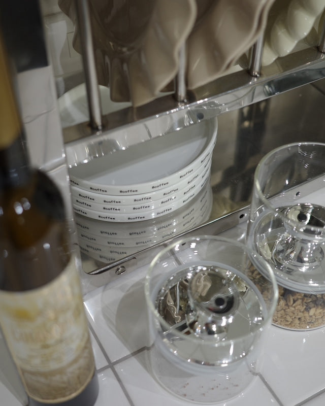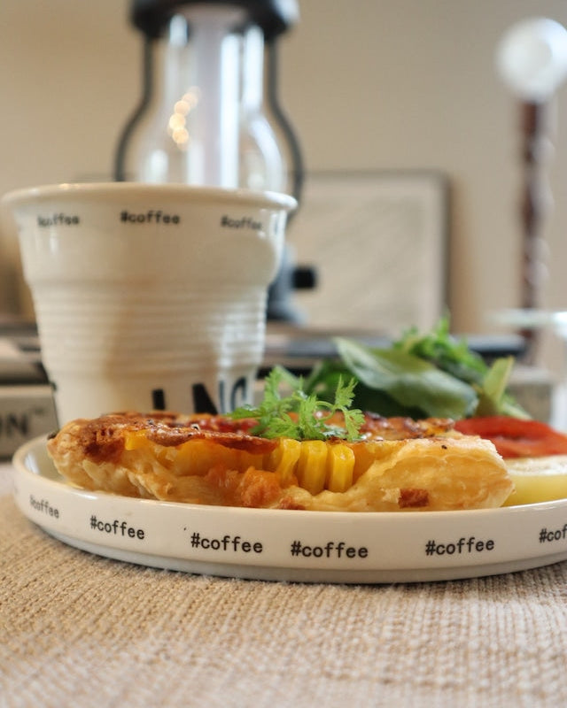 #coffeeがプリントされたシンプルなコーヒープレート。