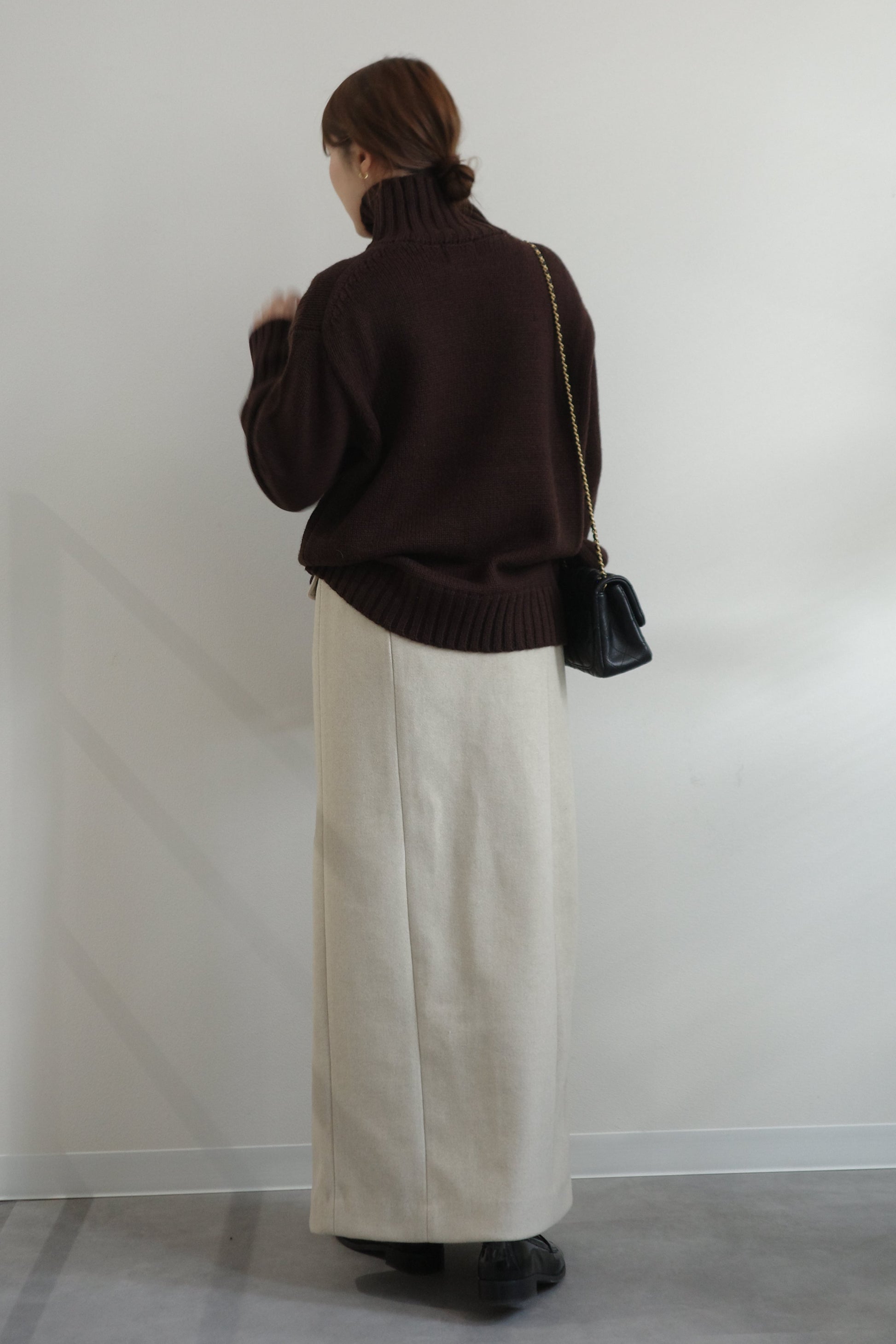カシミヤとウールの上質なブレンド素材で仕立てた、洗練されたハイネックニット。肌に優しい柔らかさと保温性を兼ね備え、冬のレイヤリングに最適です。シンプルで洗練されたシルエットは、あらゆるスタイルに合わせやすく、長く愛用できる一枚。上質な素材感が日常に格調高さをもたらします。